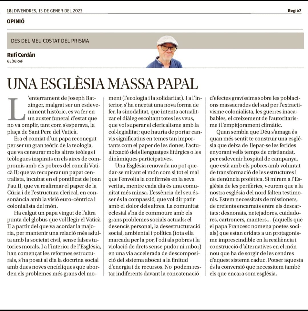 Una Església massa papal. Rufí Cerdan a Regió 7