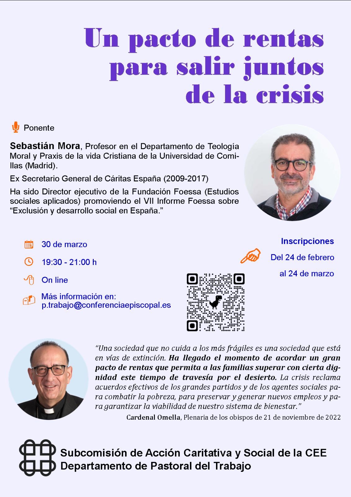 El Departament de la "Pastoral del Trabajo" de la Conferència Episcopal Espanyola organitza un acte, per videoconferència, amb el títol Un pacto de rentas para salir juntos de la crisis.